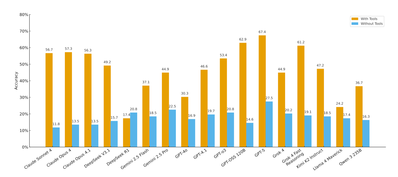 Accuracy of mainstream AI models on the CAIA crypto query benchmark.