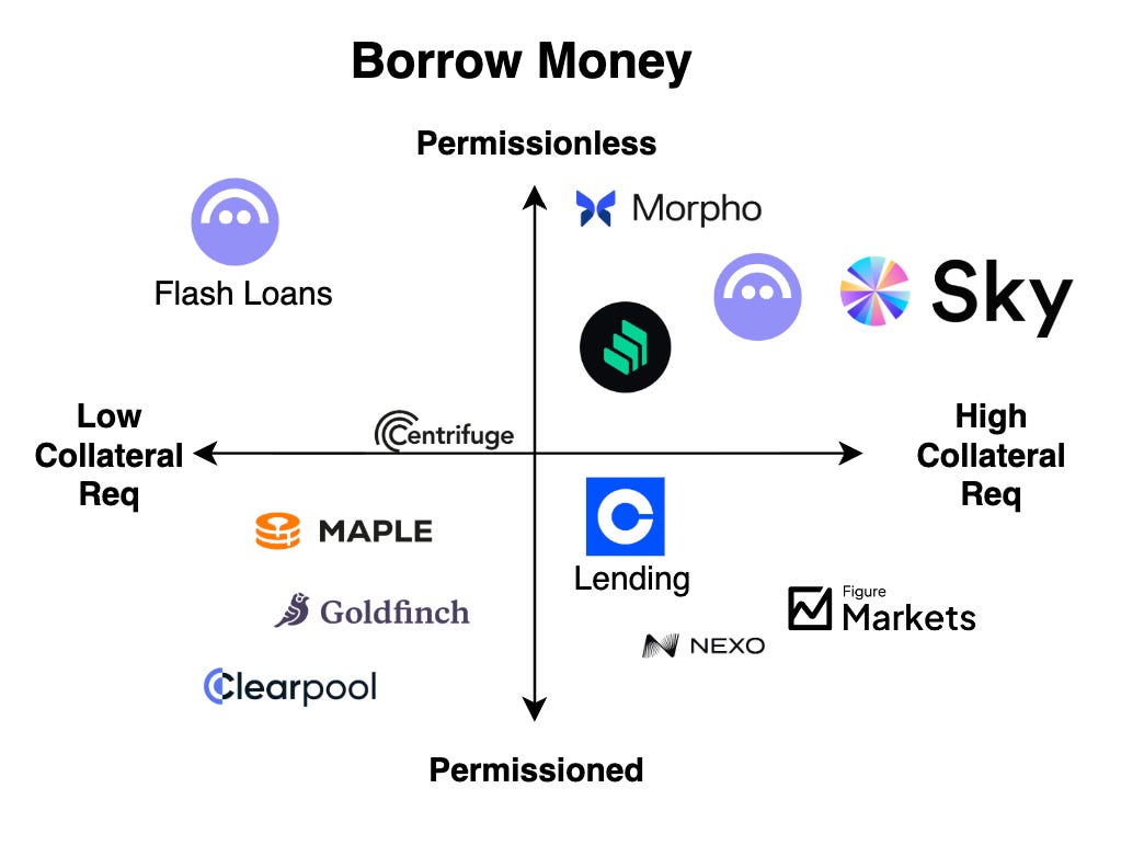 Just as in the case of traditional economies, the ability to borrow capital in crypto is a huge driver for the growth of the onchain economy. For crypto neobanks, borrowing is also one of the most important sustainable generators of yield. Whereas in the traditional world borrowing is a highly permissioned activity, mediated by KYC, credit profiles, and borrowing history, crypto borrowing systems have both permissioned and permissionless models, with different requirements for collateral capital.